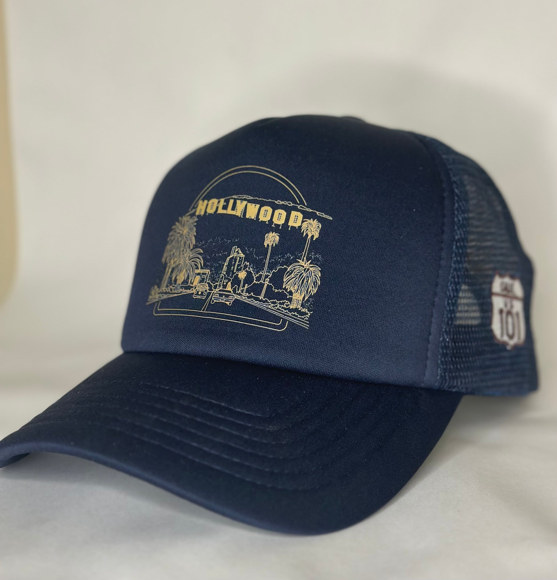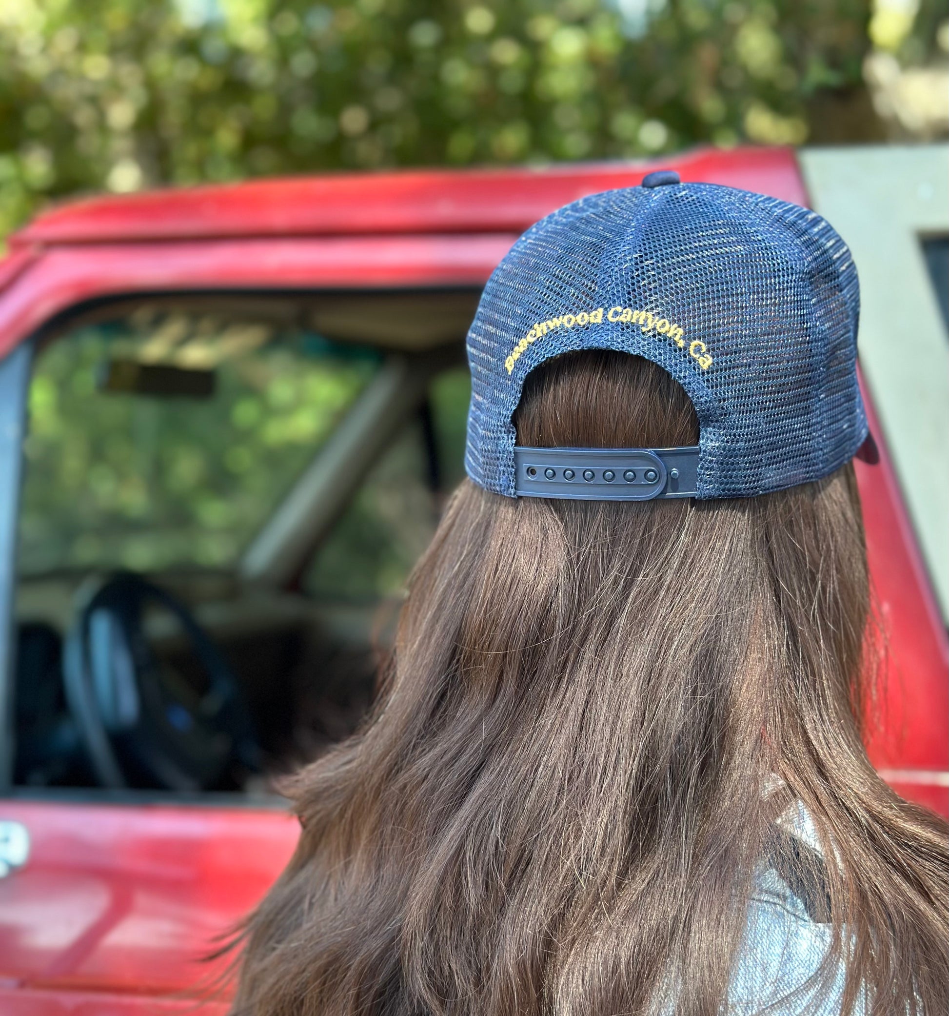 Where classic meet country, the Hollywood Hills echo with the sounds and stories of the past — Golden Era film, counter culture folk rock, and tales of hope and dreams crushed. An oasis amongst the crowded LA, entering the stone gates of Beachwood Canyon immediately transports you to a simpler time. The pace slows, the bougainvillea shines, and scents of jasmine fill the air on the Tudor, French Revival, and Spanish Colonial-lined streets where music and film legends present and past have tread. This premium trucker is inspired by just that, envisioned atop Jackson Browne's head as he cruises Beachwood Drive in his flatbed ford, window down, arm out the window. Equal parts a symbol of pride for canyon residents, and memorabilia for the canyon's many visitors, the Beachwood Trucker is premium nostalgia personified. High quality, mid-rise, and pre-curved, this is the cap for any head — Not too high. Not too wide. Sits just right. Made in Los Angeles.